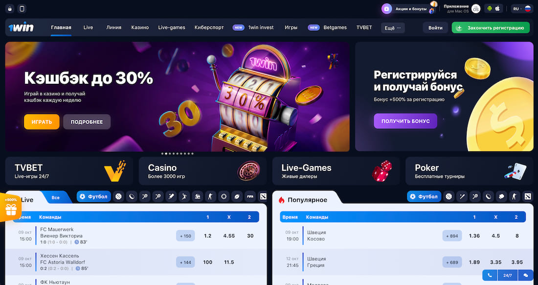 Один из самых приятных моментов — это бонус за регистрацию. 1вин щедро приветствует новичков, удваивая (а иногда и утраивая) первый депозит. Эти деньги можно использовать для ставок в БК или игр, так что не забывайте о промокоде, который активирует этот подарок.
